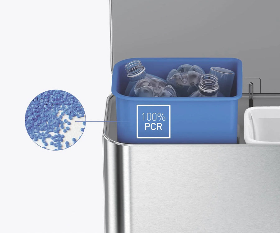 Made from 100% post-consumer recycled plastic, the inner buckets lift out for everyday disposal, quick liner changes and easy cleaning.
