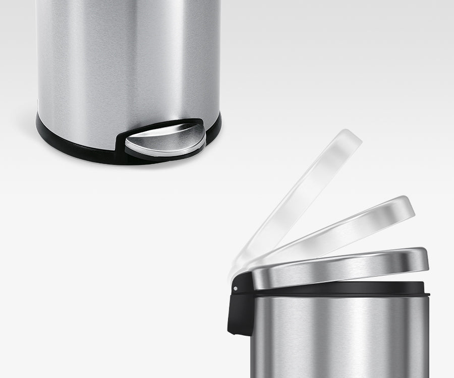 Our strong steel pedal is engineered to last over 150,000 steps — that's more than 20 steps a day for 20 years — and our patented lid shox technology controls the motion of the lid for a slow, silent close.