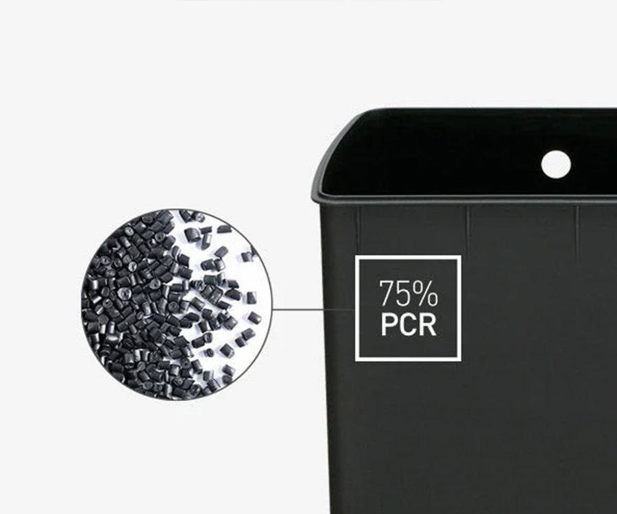 Our black inner buckets are made with at least 75% post-consumer recycled plastic.