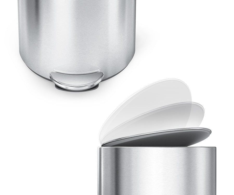 The strong pedal is engineered to last over 150,000 steps — that's more than 20 steps a day for 20 years — and our patented lid shox technology controls the motion of the lid for a slow, silent close.