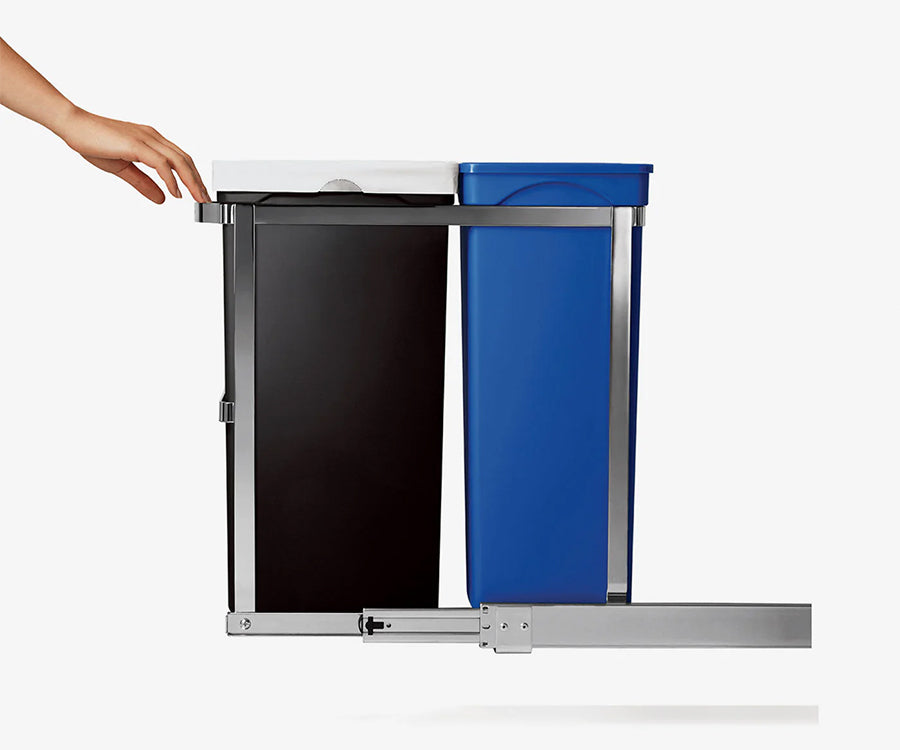 Our pull-out bin is engineered for years of use. This rubbish bin has a tough all-steel frame and glides fully out of the cabinet on smooth commercial-grade ball-bearing tracks for quick and easy access.