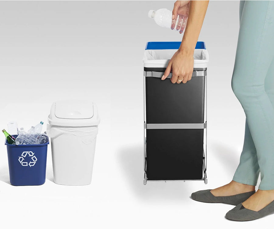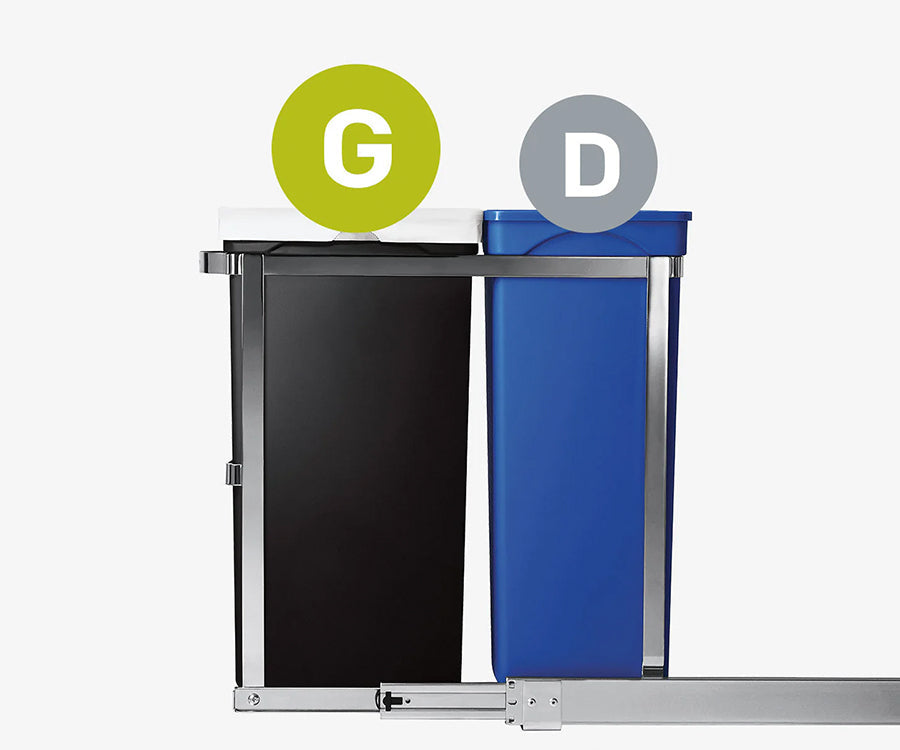 Our dual compartment option neatly sorts your rubbish and recyclables in this dual-bucket bin. One side for rubbish, one side for easy disposal of recyclables. It makes eco-friendliness very space-efficient.